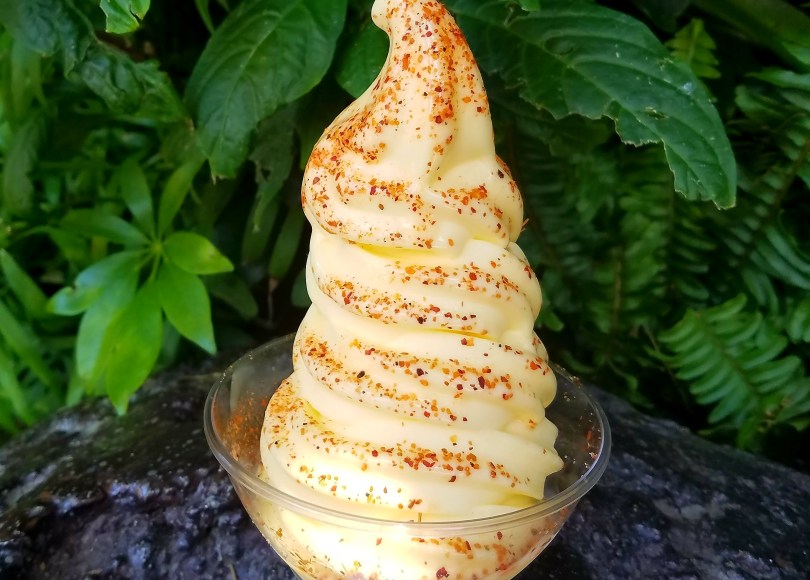 Here in Adventureland, you can get a Dole Whip (just the soft serve), a Dole Float (with pineapple juice), or a pineapple spear. If you’re into spicy, ask for a packet of tajín and the cast member will be happy to give you one!