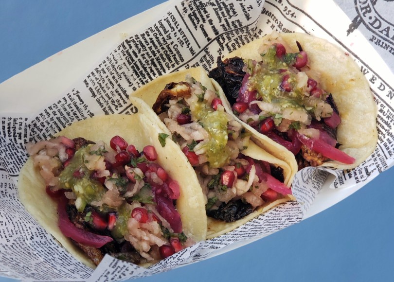 Here they have the Planet-erarium Tacos, which are vegan with no modifications! Brussels sprouts, salsa verde, pickled red onions, with apple and pomegranate slaw. They’re like Christmas dinner in a taco! They were super delicious, highly recommend!