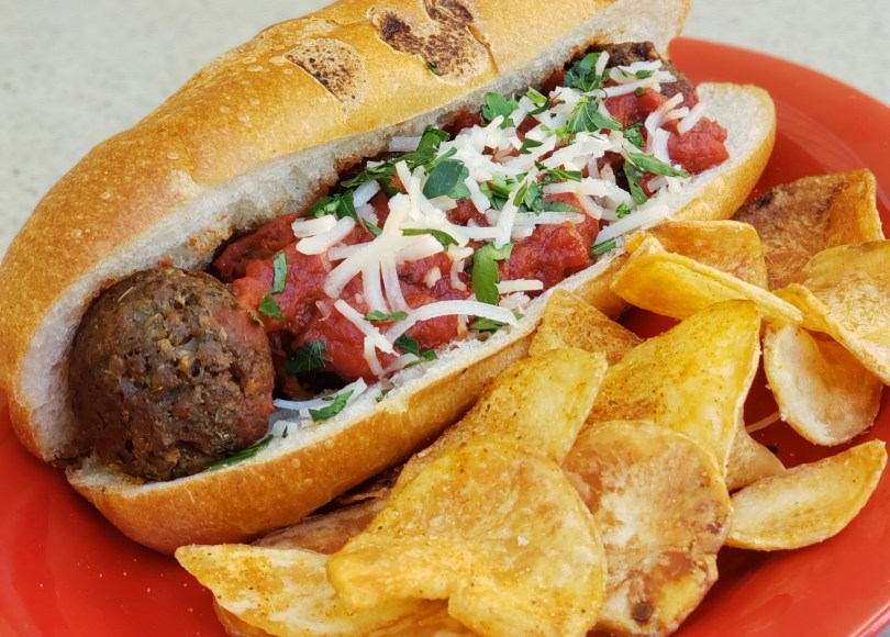 The Impossible Meatball Submarine with Marinara Sauce topped with Soy Cheese and served with Kettle Chips is clearly labeled with the new Plant-Based Symbol, meaning vegan with no modifications!
