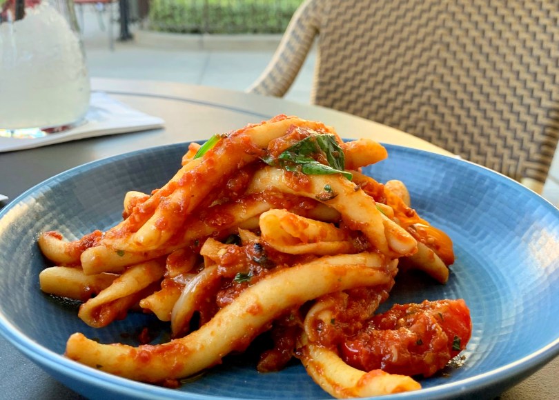Many thanks to @juliannaevs for her photos and review of the vegan dish below! It is a modified version of the Strozzapreti pasta dish. The chef told Julianna that the pasta itself is fine, no egg, and the sauce is already vegan as well. The chef said that modifications needed are to omit the cheese and basil leaves that are fried in butter.